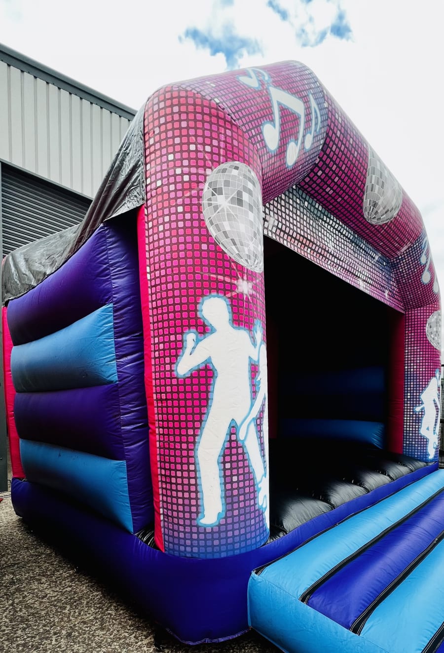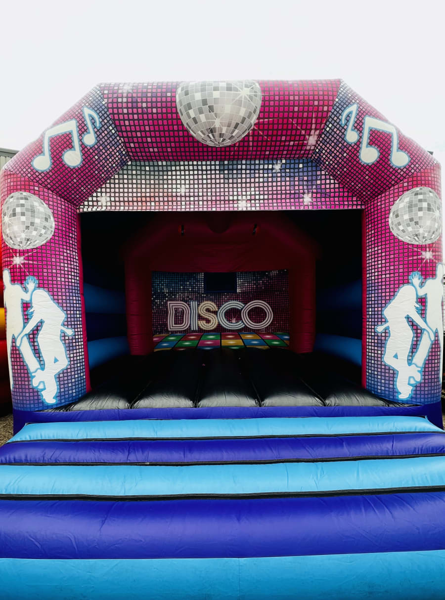 Dance away on this groovy bouncy castle at your party or event! This castle can be used by adults as well as children. Upgrade this castle now to include lights and a speaker for a small fee.